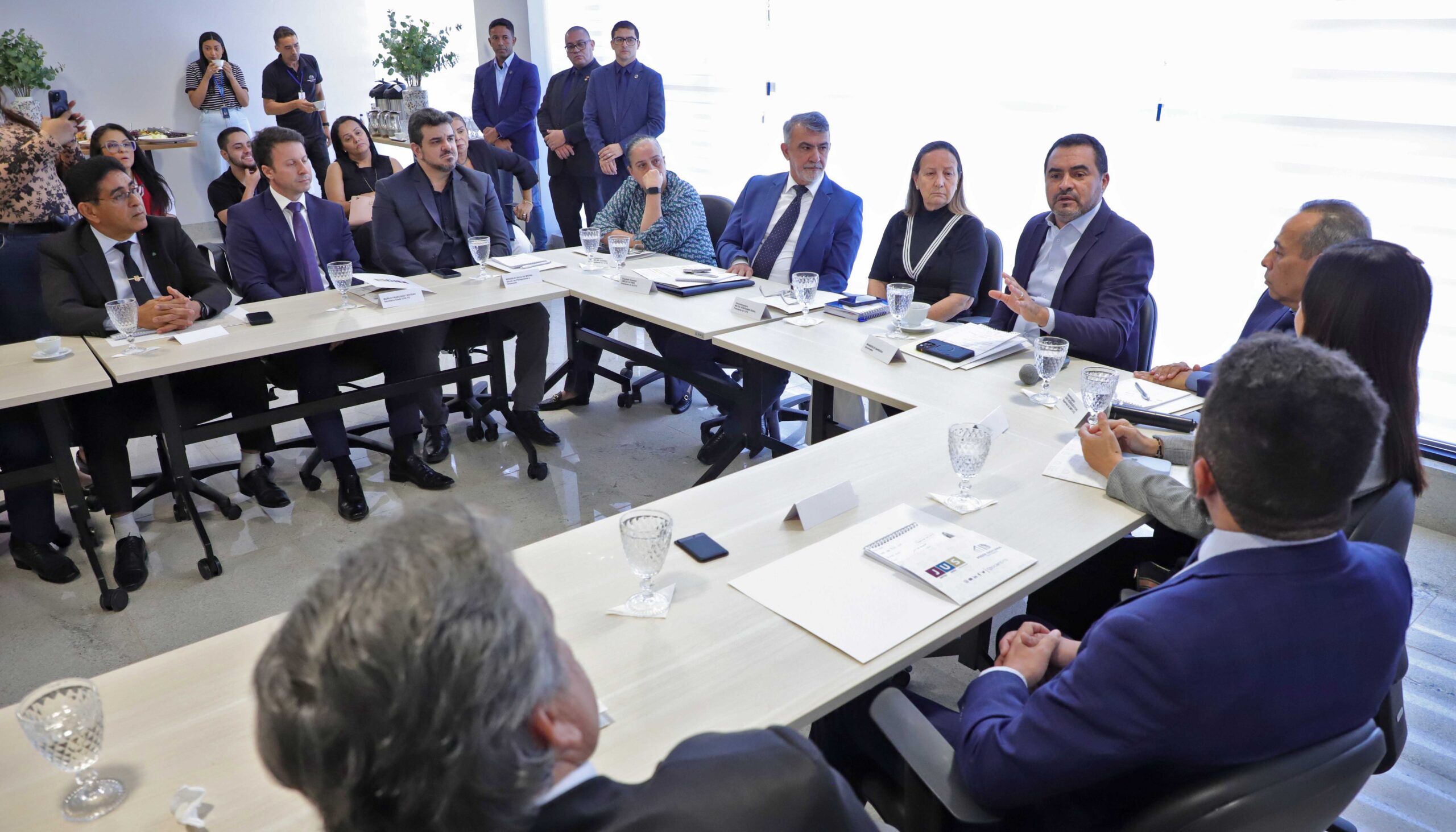 O governador do Tocantins, Wanderlei Barbosa, participou na manhã desta quarta-feira, 18, de reunião no Tribunal de Justiça do Estado do Tocantins (TJTO) para alinhar as estratégias que compõem a elaboração do Plano Nacional para o Enfrentamento do Estado de Coisas Inconstitucional nas Prisões Brasileiras (Plano Pena Justa). O encontro ocorreu após a etapa de audiências e consultas públicas, com a proposta de uma construção conjunta e interinstitucional, com participação ativa dos Poderes Executivo, Judiciário e Legislativo, que desempenham papel fundamental na consolidação de políticas públicas mais humanizadas e eficientes para o sistema penal, conforme orientações do Conselho Nacional de Justiça (CNJ).
