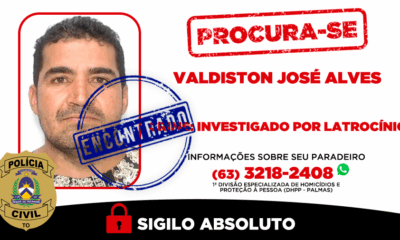 A Polícia Civil do Tocantins localizou e prendeu, na manhã desta quarta-feira, 19, Valdiston José Alves, de 50 anos, apontado como um dos envolvidos no latrocínio...